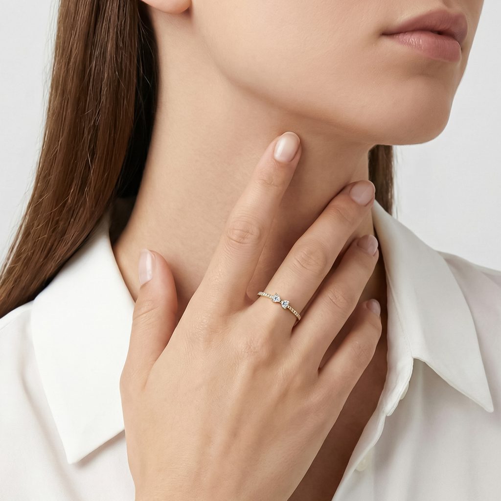 Anillo de Promesa Oro Corazón Pavé