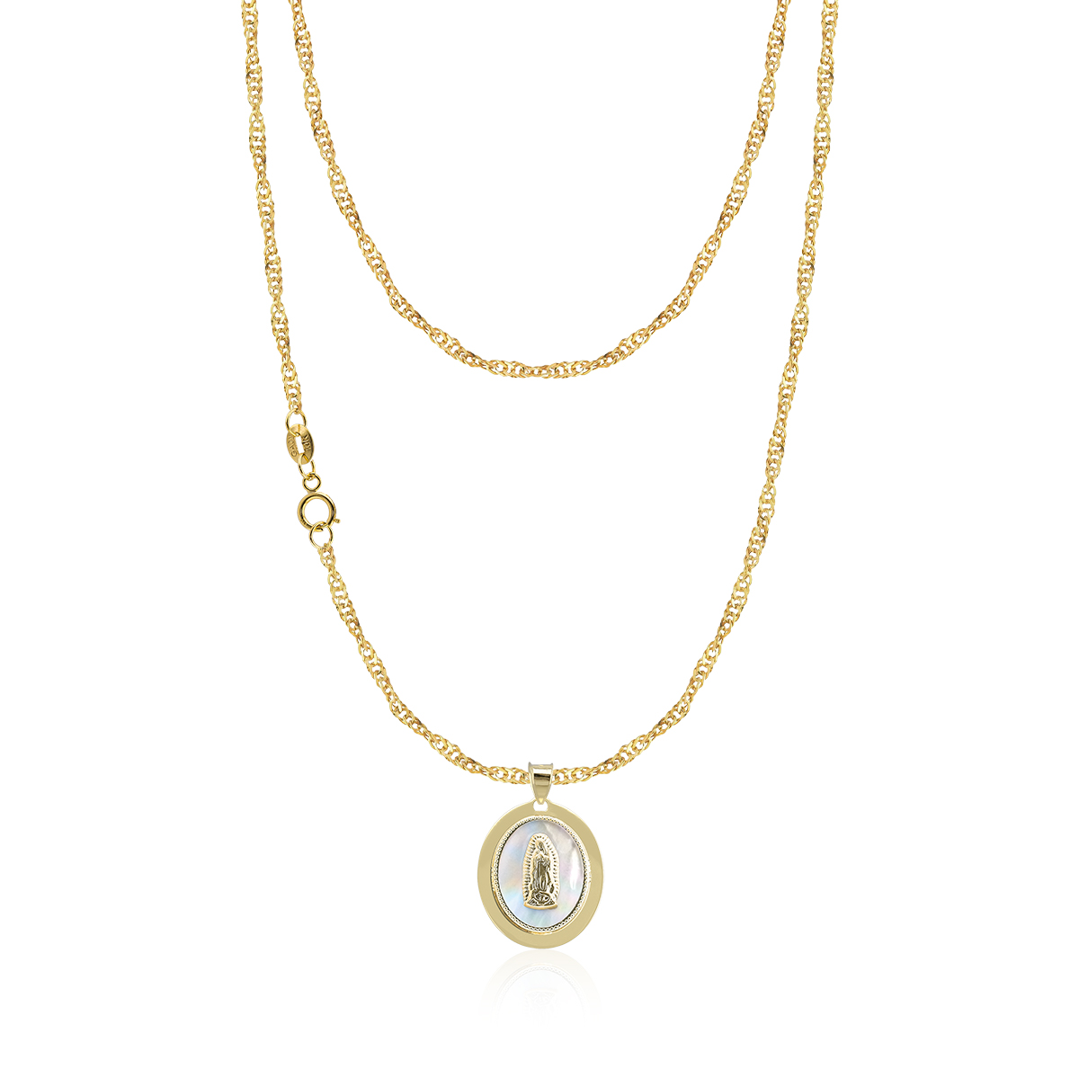 Cadena con Dije Medalla Virgen de Guadalupe Oro 10k Madreperla