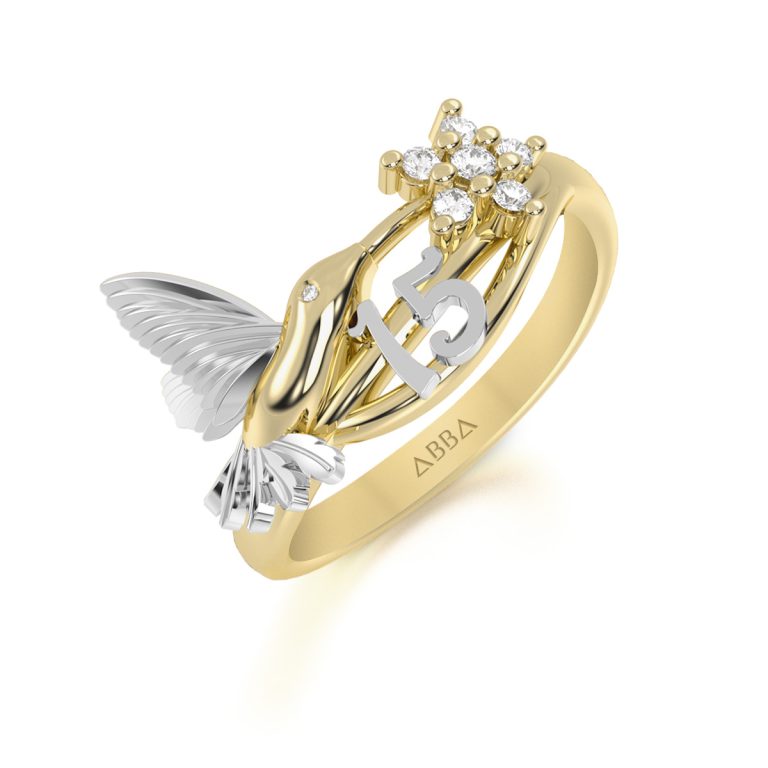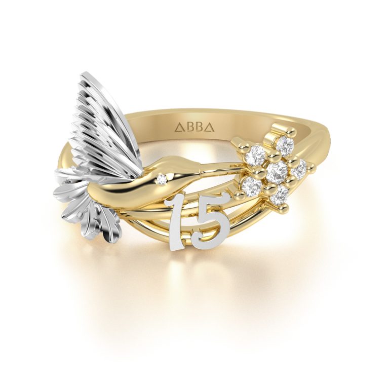 Anillo de 15 Años Oro Colibrí Flor