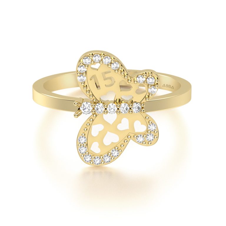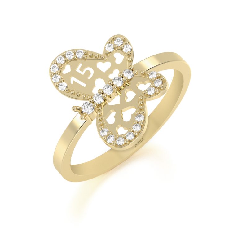 Anillo de 15 Años Oro Mariposa Corazón