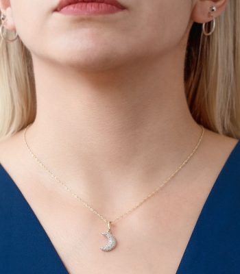 Hermoso Dije Letra M Oro inspirado en la escritura hecha a mano, con bellos trazos orgánicos y piedras zirconias de gran brillo.