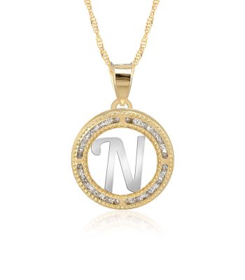 Hermoso Dije Letra M Oro inspirado en la escritura hecha a mano, con bellos trazos orgánicos y piedras zirconias de gran brillo.