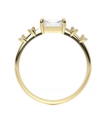 Increíble Anillo Caballero Oro Noble sofisticado con un diseño elegante y moderno. El brillo perfecto de su zirconia central corte baguette llama la atención. Las pequeñas zirconias redondas añaden la cantidad justa de brillo a esta espectacular pieza de joyería.