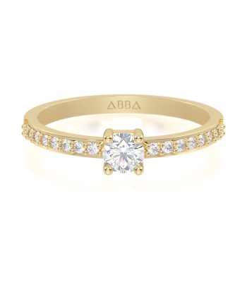 Clásico Anillo de Compromiso Oro Gloria de cuerpo liso y montadura de cuatro uñas dobles que iluminan la radiante gema central corte redondo. Enámorate de este hermoso diseño clásico y deslumbra a tú pareja para un sí, acepto! inmediato.