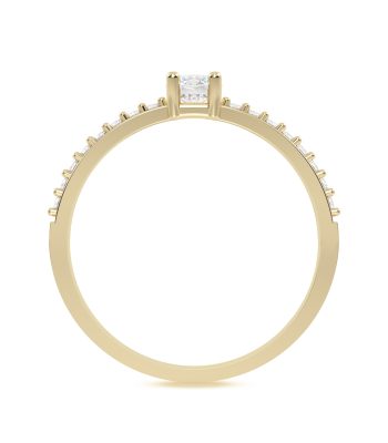 Enamorarse del Anillo de Promesa Oro Baguette Liso es inevitable. La cautivadora gema de corte baguette y el cuerpo liso crean una apariencia de elegancia refinada. Este anillo exclusivo le permitirá expresar su afecto de una manera verdaderamente excepcional. Sorprenda a esa persona especial con este símbolo duradero de su amor y compromiso. Un tesoro digno de la ocasión más importante.
