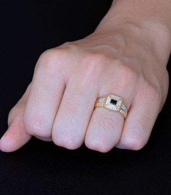 Sofisticado Anillo de Caballero Oro para hombre hecho con los materiales de la más alta calidad. La piedra zirconia central incrustada al centro del anillo en forma de octágono, le da un toque de lujo y elegancia único.
