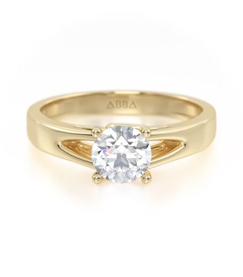 Clásico Anillo de Compromiso Oro Gloria de cuerpo liso y montadura de cuatro uñas dobles que iluminan la radiante gema central corte redondo. Enámorate de este hermoso diseño clásico y deslumbra a tú pareja para un sí, acepto! inmediato.