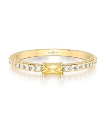 Increíble Anillo Caballero Oro Noble sofisticado con un diseño elegante y moderno. El brillo perfecto de su zirconia central corte baguette llama la atención. Las pequeñas zirconias redondas añaden la cantidad justa de brillo a esta espectacular pieza de joyería.
