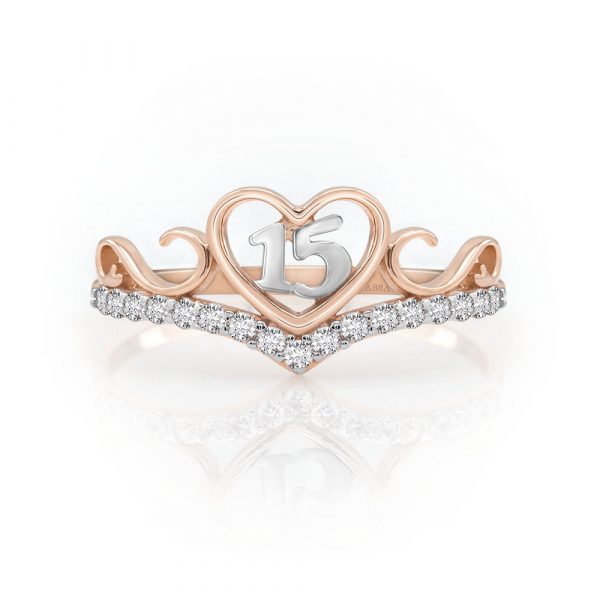 Anillo 15 Años Oro Tiara Corazón