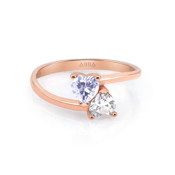 Anillo de Oro Para Mujer Dos Corazones Zirconia